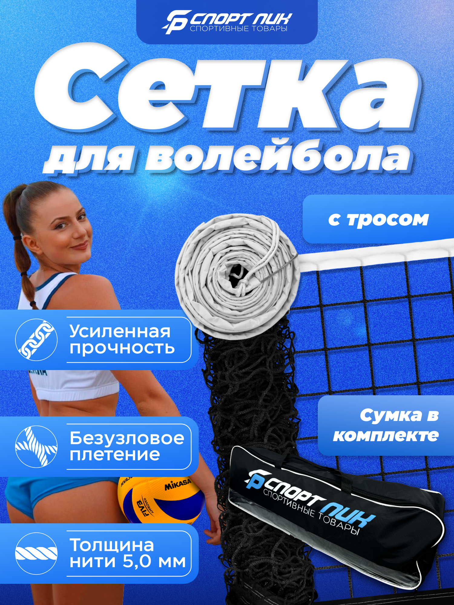 Волейбольная сетка СпортПик для улицы, с сумкой и тросом, черная, 9,5х1 м, нить 5 мм.: сравнение цен, характеристики, фото, актуальное наличие и цены.