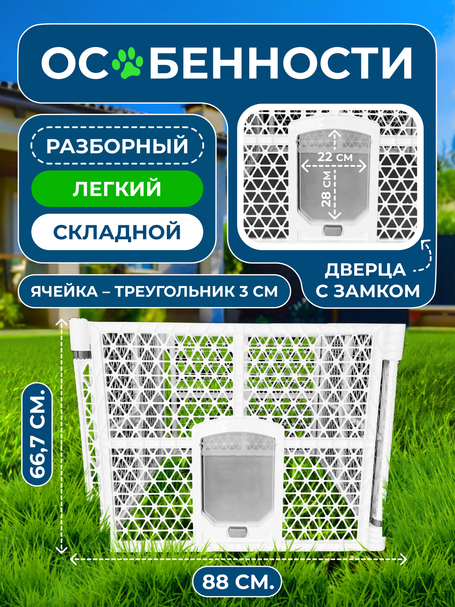 Купить Вольер для собак «Чистый Котик» четыре секции, разборный, белый, пластик 88x88x66,7 см. с доставкой по всей России.
