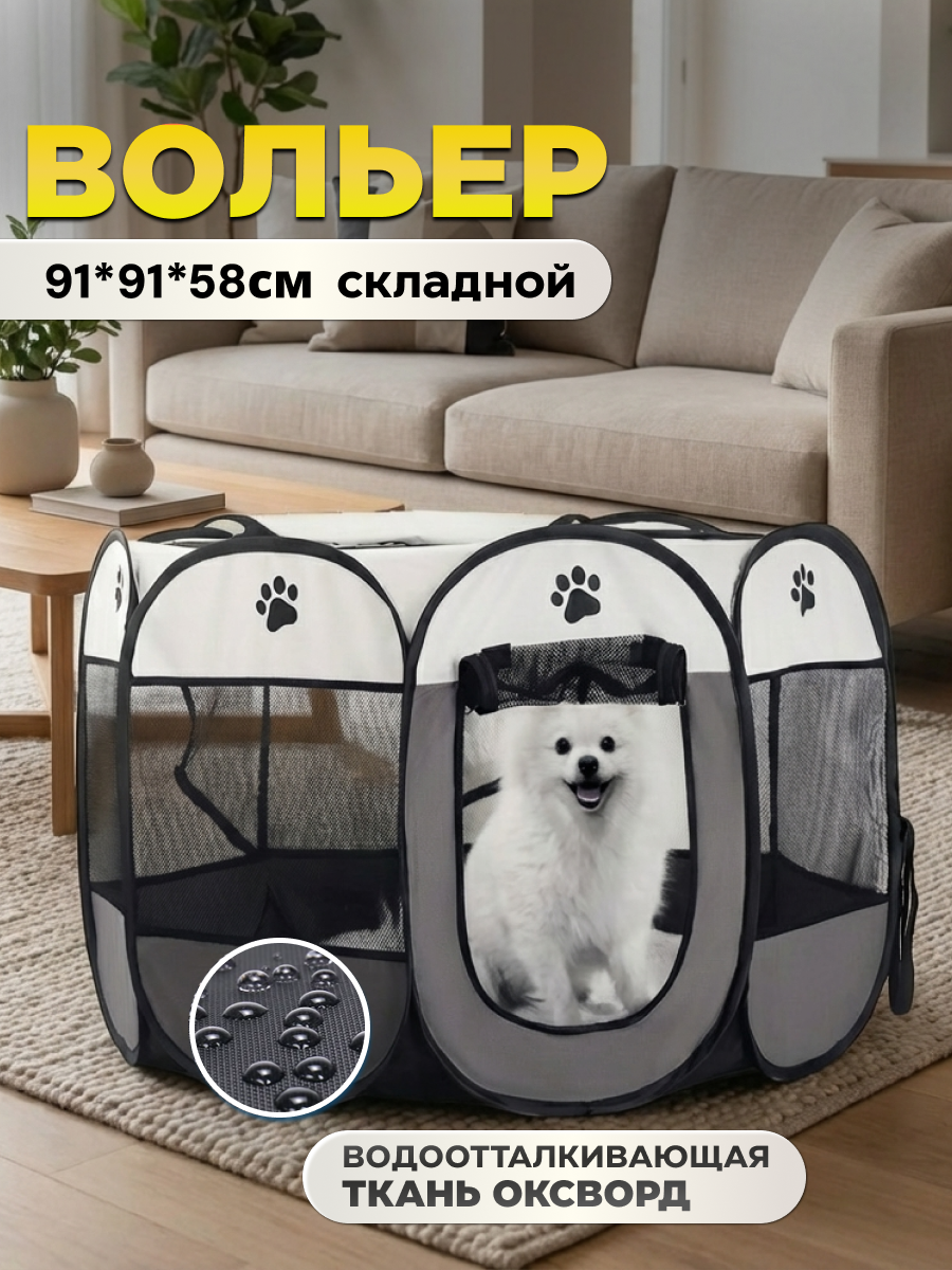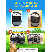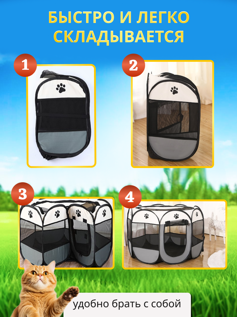Вольер манеж для собак и кошек - идеальный вариант для организации безопасного пространства. Эта клетка подходит для мелких пород животных, собак, котят, кроликов. Просторная конструкция позволяет использовать её как домик или ограждение для домашних любимцев. Складной дизайн облегчает транспортировку и хранение. Благодаря сборной конструкции его легко разложить и собрать обратно. Этот переносной манеж можно взять с собой в путешествие на машине, к пляжу или на загородный участок. Подойдет для поездки на пикник: крыша защитит от непогоды, а перегородки предотвратят побег животного. Большая сетка обеспечивает обзор и циркуляцию воздуха. Тканевый шатер предоставляет уютное место отдыха питомцам. Дверца на молнии помогает быстрой адаптации животного к новому месту. В таком вольере-домике ваши питомцы будут чувствовать себя в безопасности.