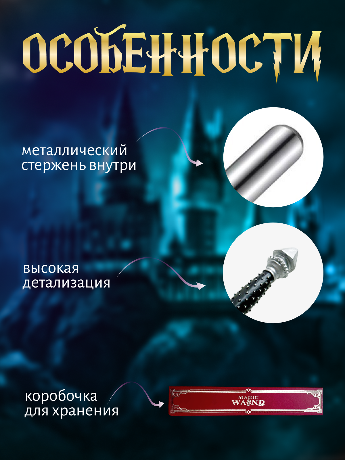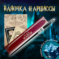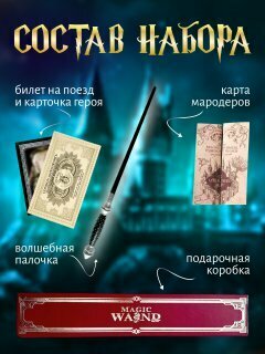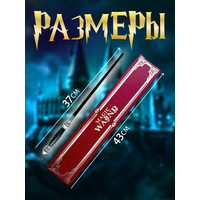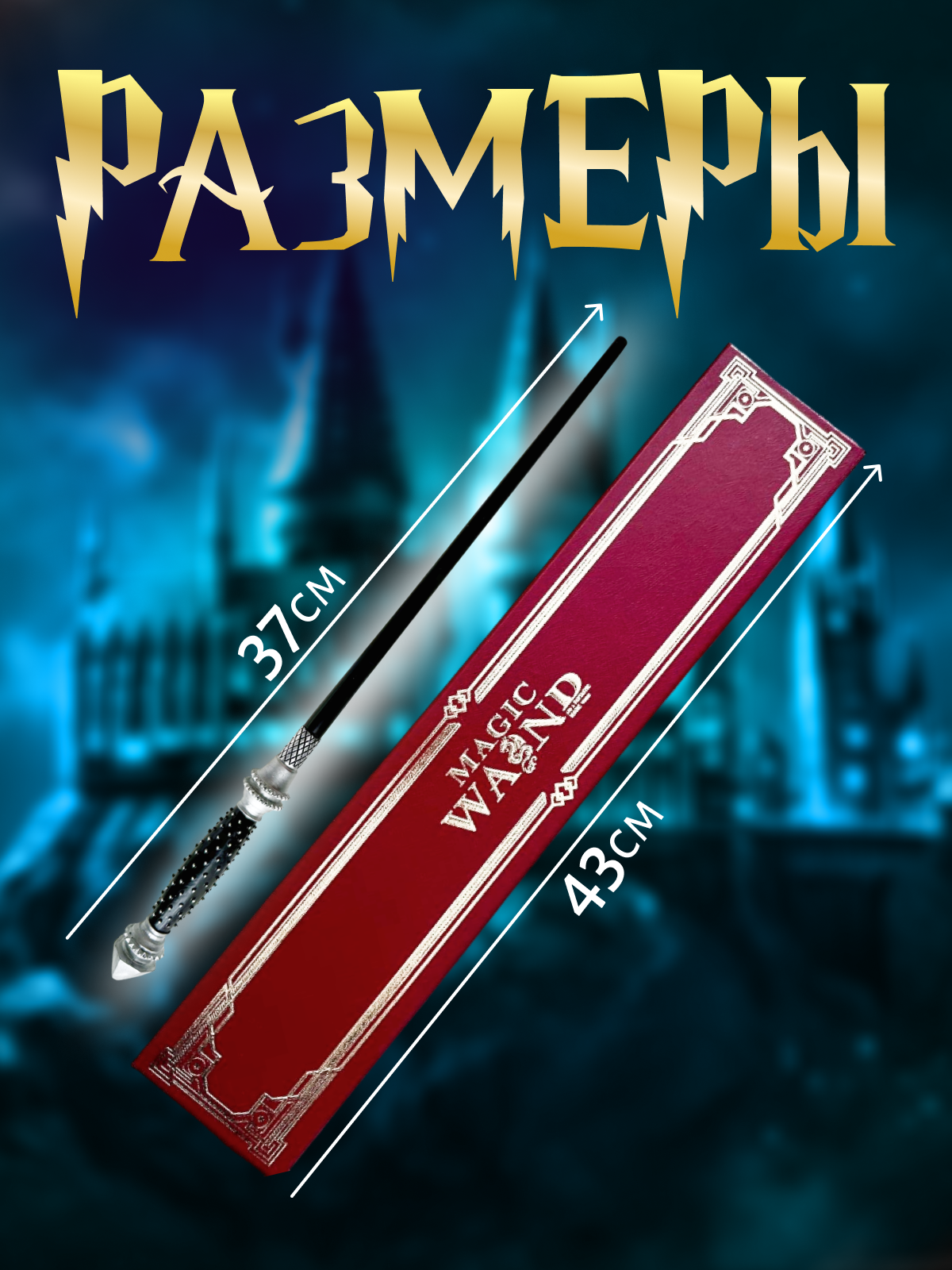 Волшебная палочка любимого героя из вселенной Гарри Поттера поставляется в подарочной коробке с бархатной подложкой и золотым тиснением. Палочка Гарри и др. героев придет вам с подарком: билет на поезд и/или карточка персонажа. В нашем магазине вы можете выбрать волшебную палочку любого персонажа: Гарри Поттера, пожирателя смерти, лорда Волан де Морта, Бузинную палочку Альбуса Дамблдора, Гермионы Грейнджер, Рона Уизли, Люциуса Малфоя, Драко Малфоя, Сириуса Блэка, Беллатрисы Лестрейндж, Флер Делакур, Нарциссы Малфой, Невилла Долгопупса, Ремуса Люпина, Филиуса Флитвика, Полумны Лавгуд, Алекто Кэрроу, Минервы Макгонагалл, Ксенофилиуса Лавгуда. Размер палочки в среднем 40 см, в зависимости от вида. Внутри волшебная палочка Гарри Поттера имеет металлический стержень, что делает ее достаточно весомой. Волшебная палочка - это прекрасный карнавальный аксессуар, отличный подарок всем поклонникам фильма и книги, а также она подойдет для маскарада или косплея. Все палочки сверху покрыты слоем смолы, что делает их долговечными в использовании.