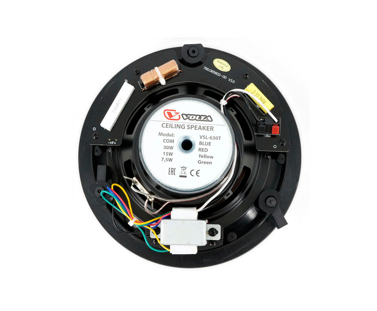 VOLTA VSL-630TB Громкоговоритель потолочный 2-х полосный. Мощность 30 Вт/100 В, отводы трансформатора 30-15-7,5 Вт/8Ω, 60-20 000 Гц. Цвет черный. Масс: сравнение цен, характеристики, фото, актуальное наличие и цены.