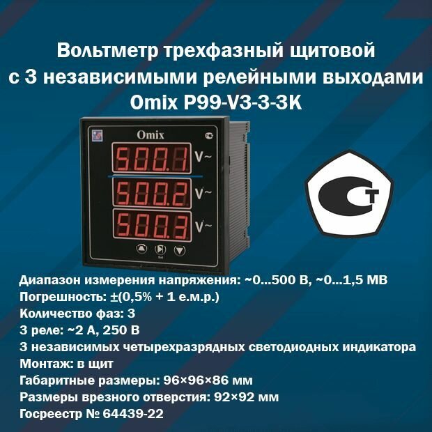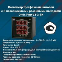 Вольтметр трехфазный щитовой с 3 релейными выходами Omix P99-V3-3-3K (корпус 96x96x86 мм): сравнение цен, характеристики, фото, актуальное наличие и цены.