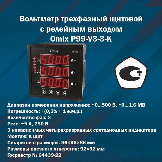 Вольтметр трехфазный щитовой с релейным выходом Omix P99-V3-3-K (корпус 96x96x86 мм): сравнение цен, характеристики, фото, актуальное наличие и цены.