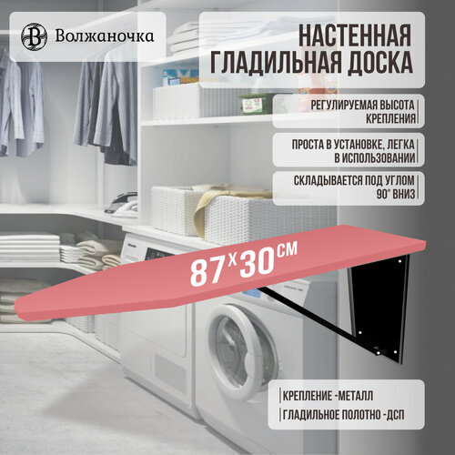 Волжаночка Гладильная доска настенная встраиваемая в шкаф, размер 87х30 см, цвет розовый: сравнение цен, характеристики, фото, актуальное наличие и цены.