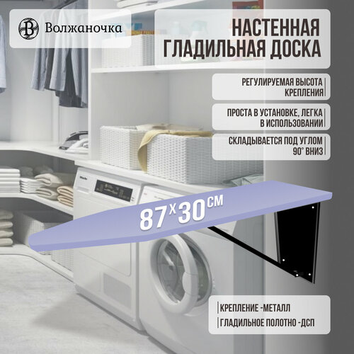 Волжаночка Гладильная доска настенная встраиваемая в шкаф, размер 87х30 см, цвет синий: сравнение цен, характеристики, фото, актуальное наличие и цены.