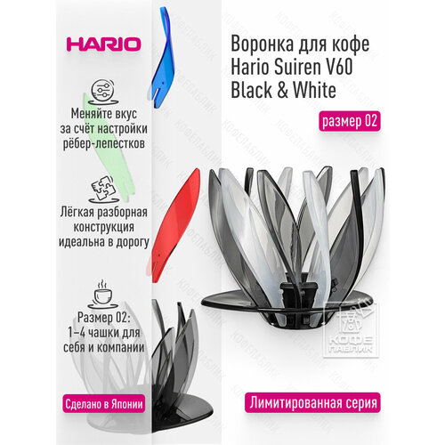 Воронка для кофе Hario Suiren VDSU-02-B&W V60, пластиковая, черно-белая, 14 чашки: сравнение цен, характеристики, фото, актуальное наличие и цены.