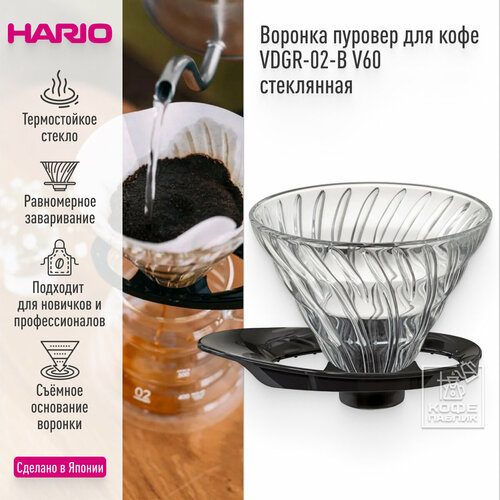 Воронка для заваривания кофе пуровер Hario VDGR-02B V60, стекло, съёмная основа, черная: сравнение цен, характеристики, фото, актуальное наличие и цены.