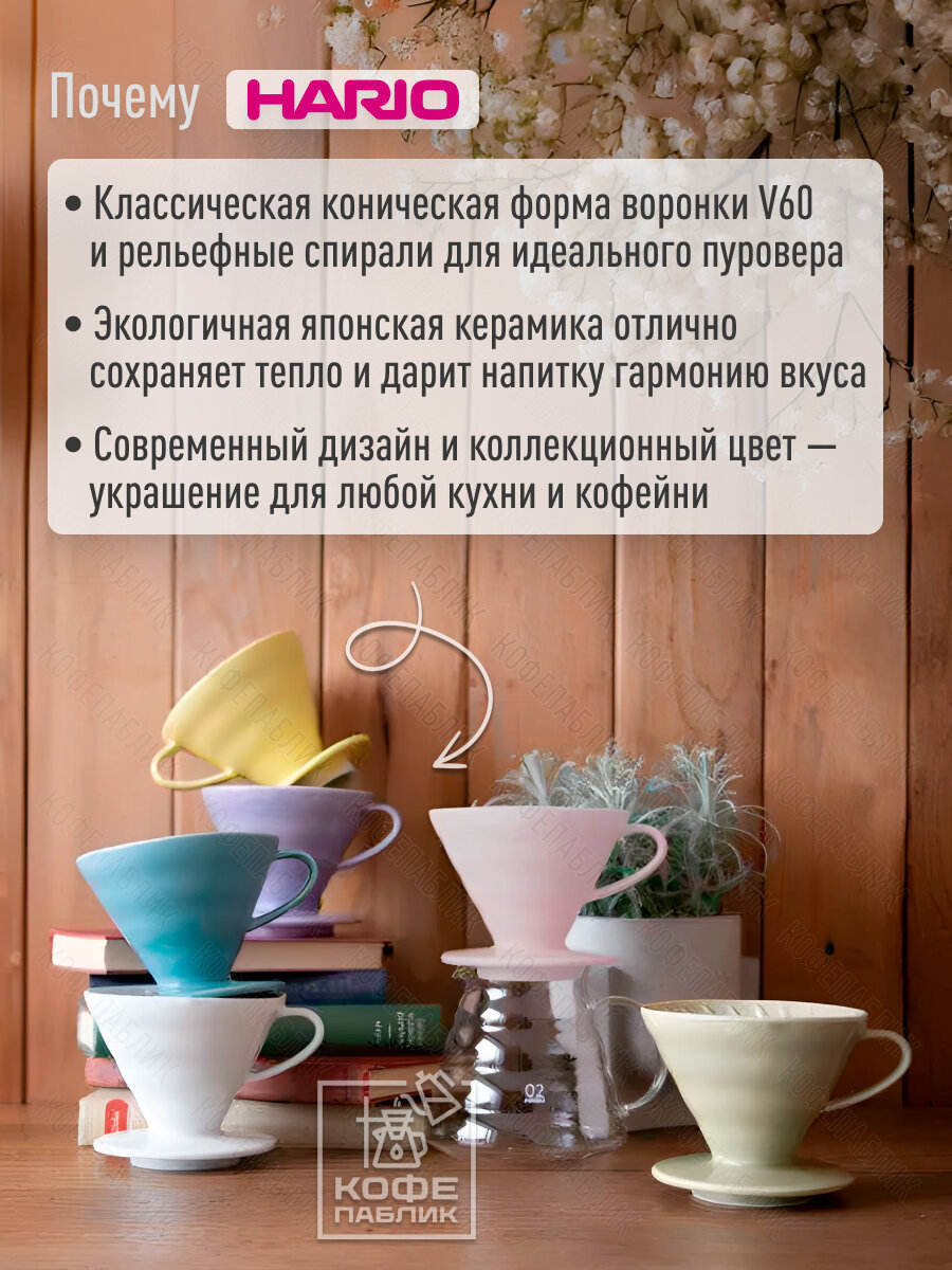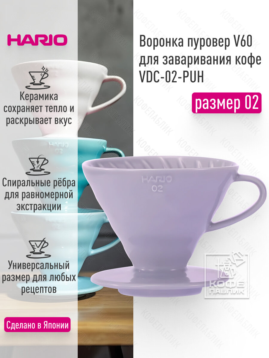 Воронка для заваривания кофе HARIO V60 02 керамическая, сиренево-фиолетовая: сравнение цен, характеристики, фото, актуальное наличие и цены.