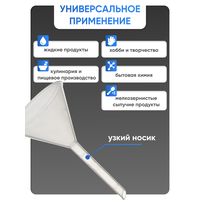 Основные характеристики: - Диаметр воронки: 100 ± 10,0 мм - Диаметр носика: 14 ± 2,0 мм - Высота: 230мм - Количество: 1 штука