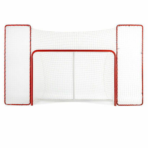 Так же в комплекте защита/улавливатель вокруг хоккейных ворот для тренировок. Предназначена для улавливания шайб или мячей, не попавших в створ ворот. Улавливатель шайб представляет собой разборную конструкцию с облегченным процессом сборки, изготовленную из стальных труб диаметром Ø 25 мм, толщина стенки 1.0 мм. Сетка изготовлена из сверхпрочной синтетической нити толщиной 4 мм.