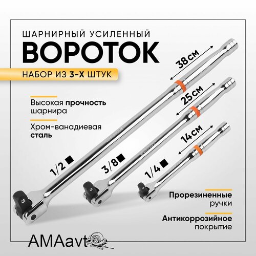 Купить Вороток шарнирный усиленный для головок 1/2, 1/4, 3/8 , набор из 3х штук с доставкой по всей России. Вороток шарнирный усиленный для головок 1/2, 1/4, 3/8 , набор из 3х штук: сравнение цен, характеристики, фото, актуальное наличие и цены.