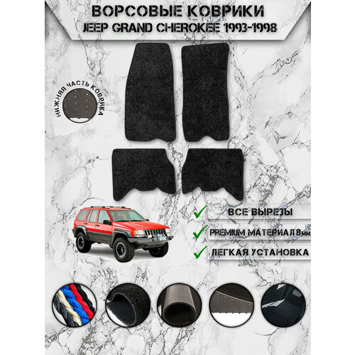 Купить Ворсовые коврики «Люкс» для авто Джип Гранд Чероки / Jeep Grand Cherokee ZJ 1992-1998 Г. В. Чёрный С Чёрным Кантом с доставкой по всей России.