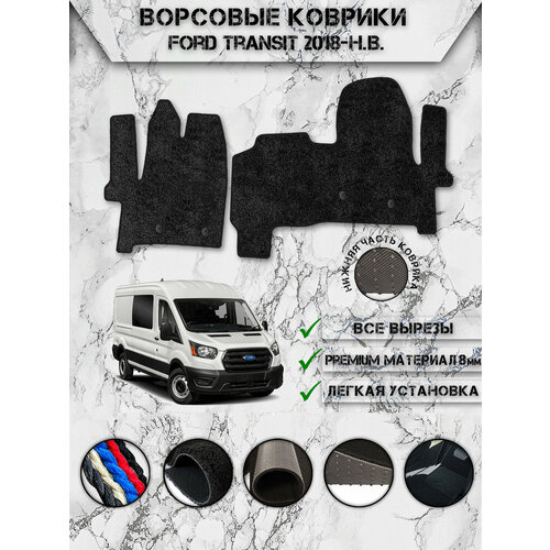 Купить Ворсовые коврики «Люкс» для авто Форд Транзит / Ford Transit 2018-2024 Г. В. Чёрный С Чёрным Кантом с доставкой по всей России.