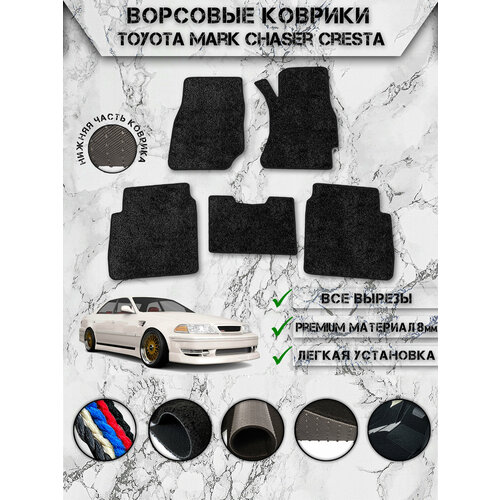 Ворсовые коврики «Люкс» для авто Тойота Марк / Toyota Mark/Chaser/Cresta 2WD (100, правый руль) 1996-2000 Г. В. Чёрный С Чёрным Кантом: сравнение цен, характеристики, фото, актуальное наличие и цены.
