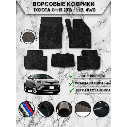 Купить Ворсовые коврики «Премиум» для авто Тойота / Toyota C-HR (правый руль) 2016-2024 Чёрный с доставкой по всей России.