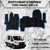 Купить Ворсовые коврики «Стандарт» для авто Форд Транзит / Ford Transit 2018-2024 Г. В. Чёрный С Синим Кантом с доставкой по всей России.