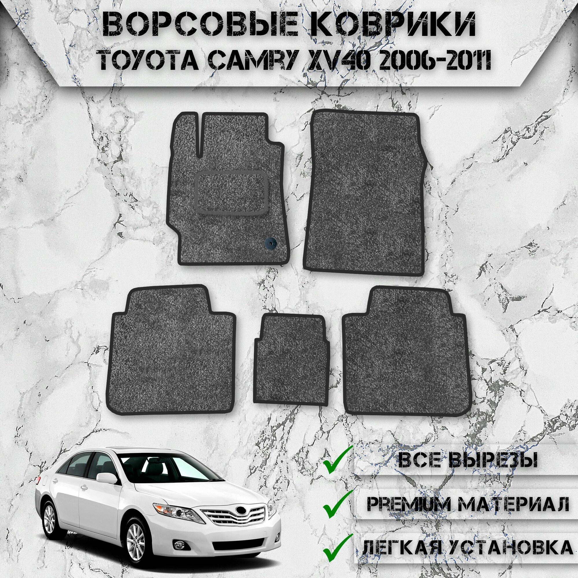 Ворсовые коврики «Стандарт» для авто Тойота Камри / Toyota Левый Руль Camry XV40 2006-2011 Г. В. Серый С Чёрным Кантом: сравнение цен, характеристики, фото, актуальное наличие и цены.