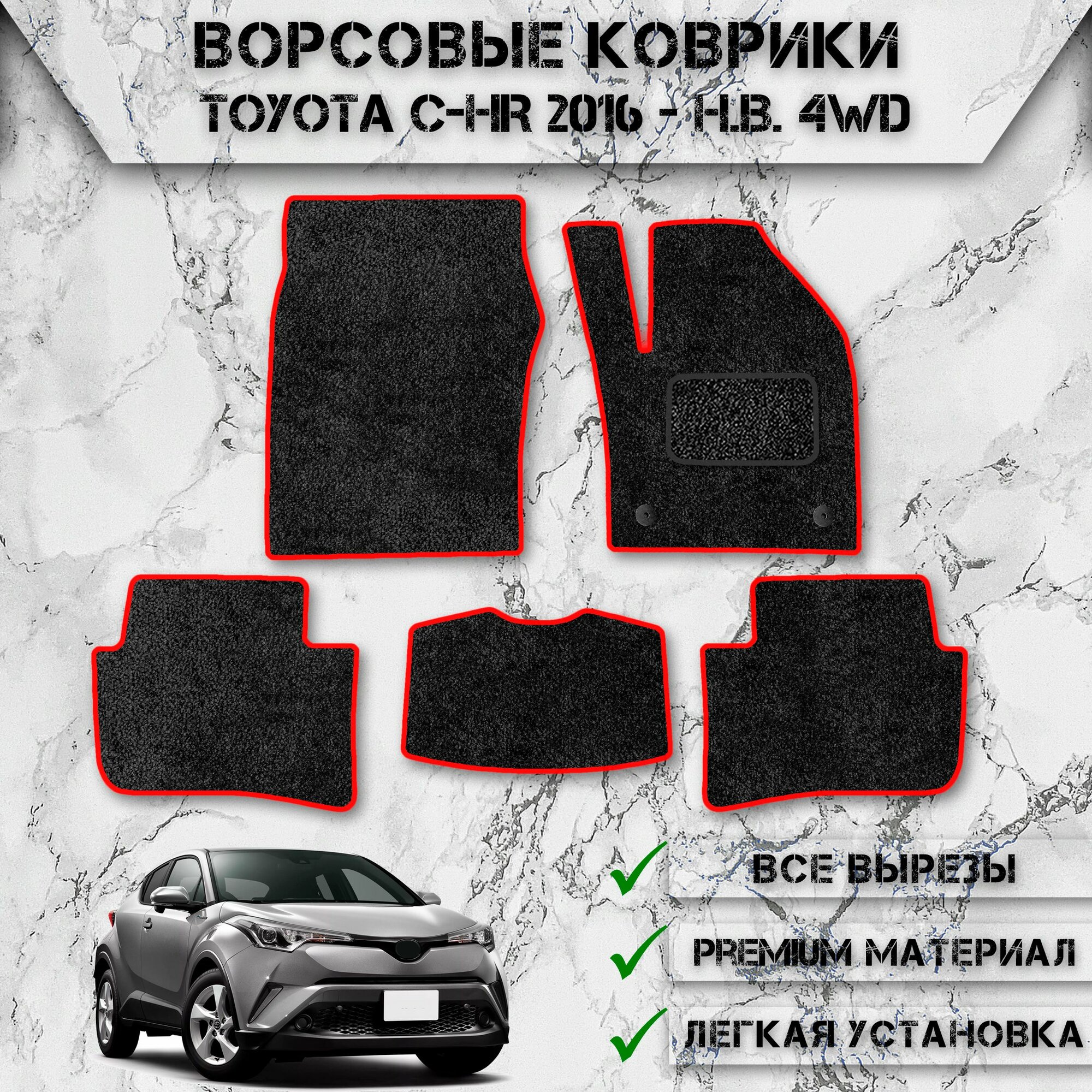 Купить Ворсовые коврики «Стандарт» для авто Тойота / Toyota C-HR (правый руль) 2016-2024 Г. В. Чёрный С Красным Кантом с доставкой по всей России.