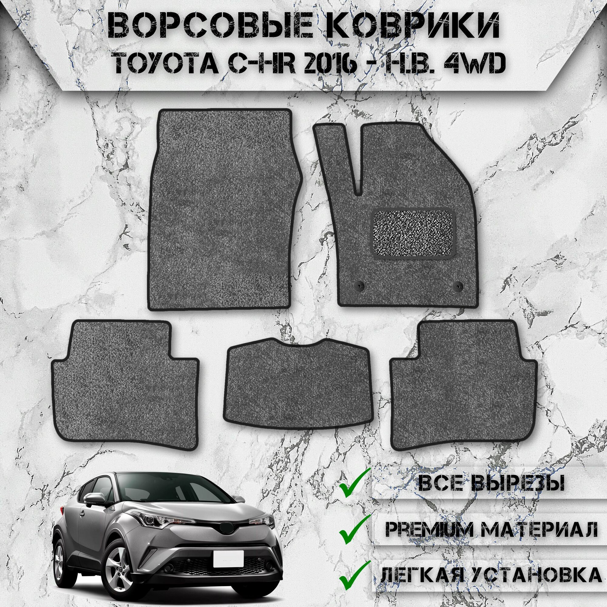 Купить Ворсовые коврики «Стандарт» для авто Тойота / Toyota C-HR (правый руль) 2016-2024 Г. В. Серый С Чёрным Кантом с доставкой по всей России.