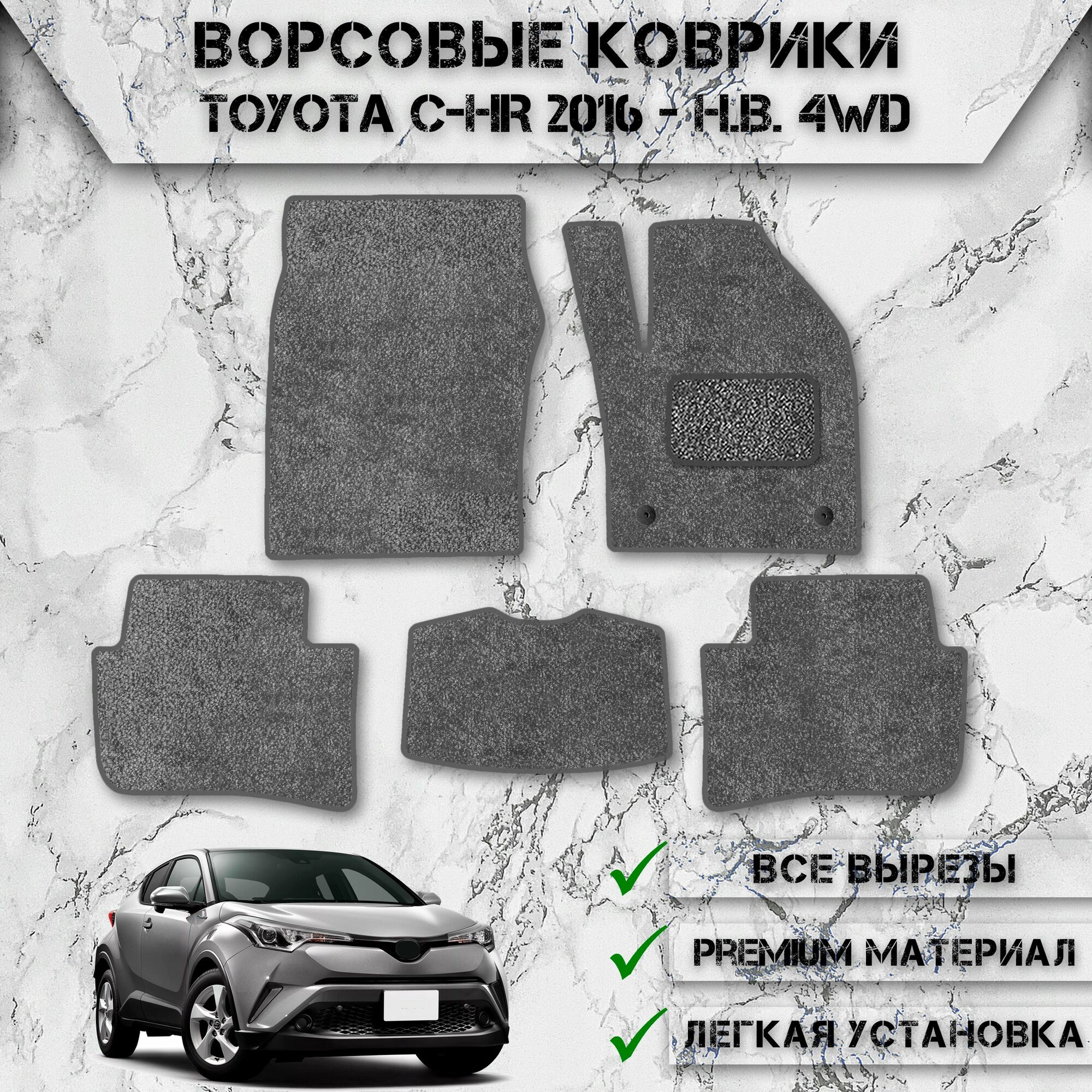 Купить Ворсовые коврики «Стандарт» для авто Тойота / Toyota C-HR (правый руль) 2016-2024 Г. В. Серый С Серым Кантом с доставкой по всей России.