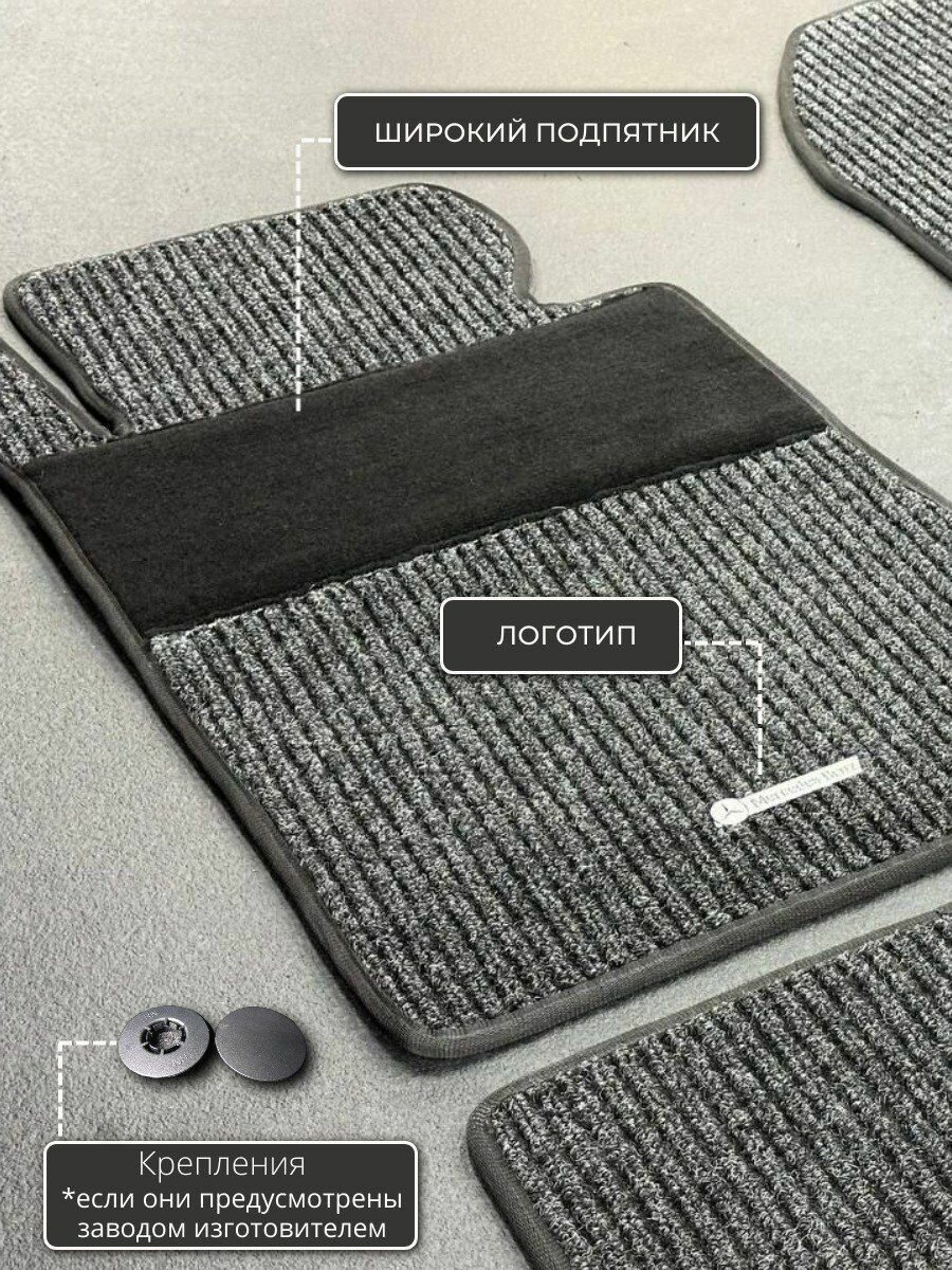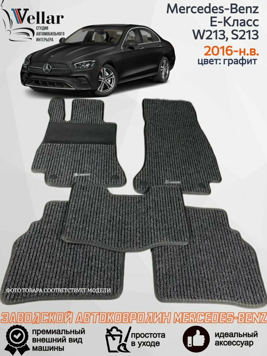 Представляем стильные и комфортные ворсовые коврики в салон Mercedes-Benz E-Класс V W213, 2016-н. в, изготовленные из высококачественных материалов. Эти автомобильные коврики обеспечат максимальный комфорт и защиту вашего автомобиля. Наши автоковрики отличаются от заводских размеров и обеспечивают максимальное покрытие пола авто и идеально ложатся под педали. При изготовлении используются профессиональные автомобильные ковролины, которые обеспечивают долговечность и износостойкость изделий. Для изготовления этих ковриков мы используем оригинальный репсовый ковролин Merseds-Benz. Двойная борозда.