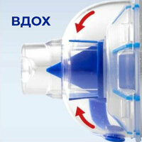 Наличие на адаптере силиконовых лопастей приводит к образованию вихревого потока, что гарантирует эффективное доставление лекарства в дыхательные пути пользователя