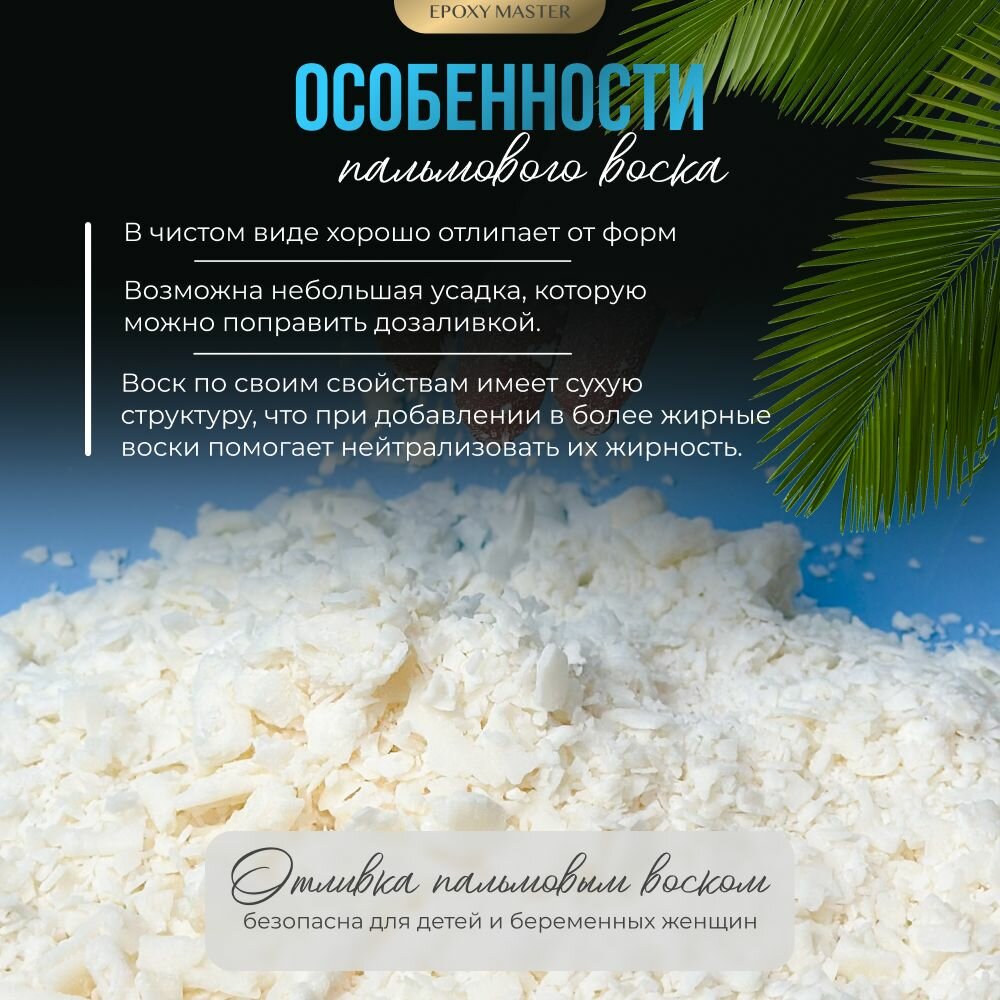 Воск натуральный пальмовый для формовых свечей и нейтрализации жирности EPOXYMASTER, 1 кг: сравнение цен, характеристики, фото, актуальное наличие и цены.