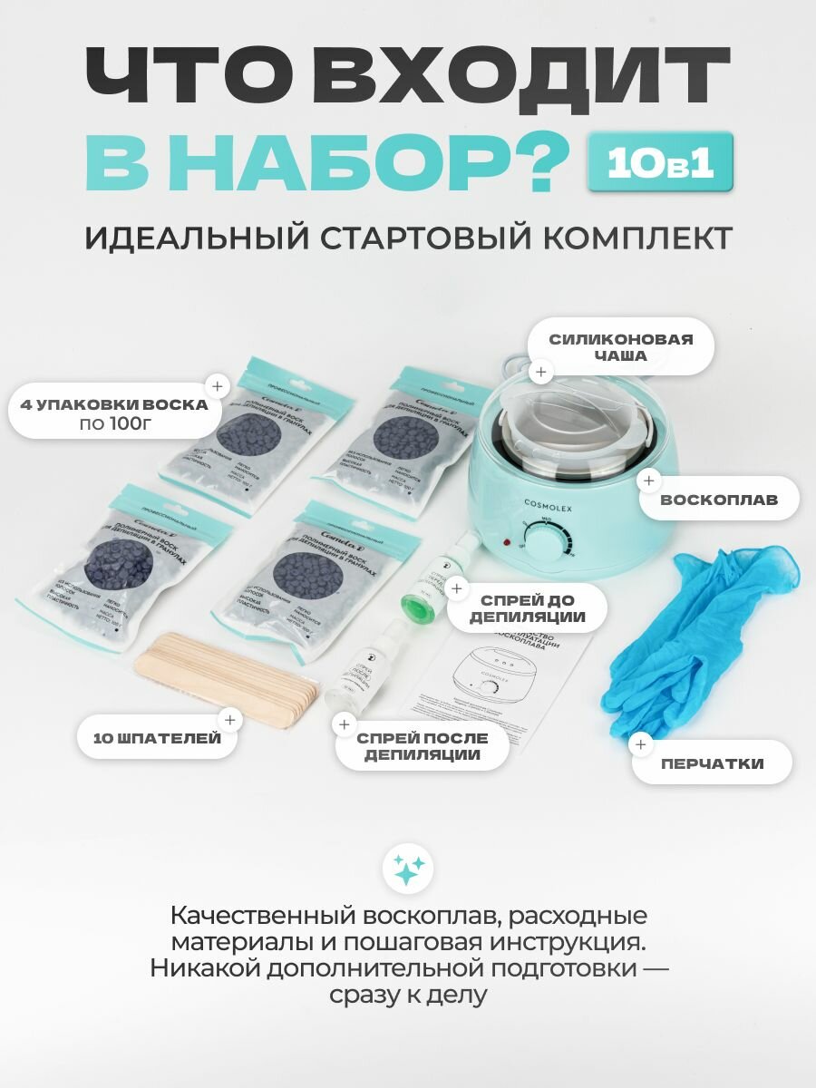 Воскоплав для депиляции набор 10 в 1, баночный воскоплав с регулятором температуры, 400 мл / Cosmolex: сравнение цен, характеристики, фото, актуальное наличие и цены.