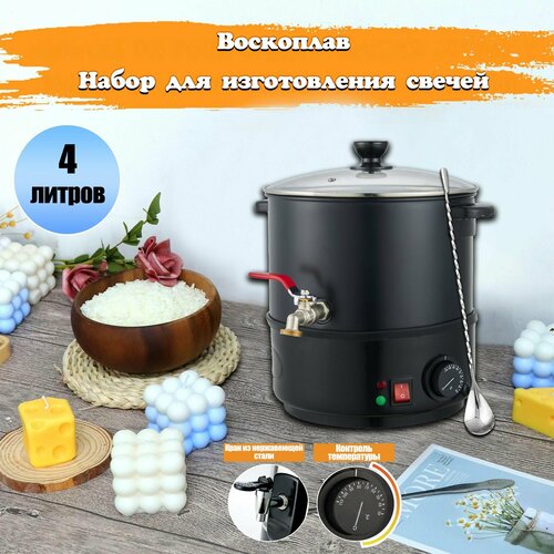 Воскоплав, Набор для изготовления свечей, с удобным носиком и контролем температуры 30-110 С, с цифровой индикацией температуры, для свечей, мыла, крема, красоты.