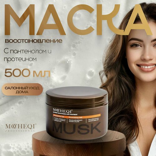 Маска Mocheqi Musk Nutrient Moisturizing Hair Treatment (500 мл) с пантенолом интенсивно восстанавливает поврежденные волосы, усиливая эффект ботокса и кератинового выпрямления. Она придает волосам гладкость, блеск и роскошный аромат, визуально преображая окрашенные и поврежденные пряди. О бладает мощным кондиционирующим эффектом. Выпрямляет «непослушные» волосы. Рекомендована к использованию после таких процедур как Ботокс и Кератин.