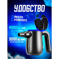 Универсальная воздуходувка электрическая предназначена для чистки и продувки компьютера - это уникальная разработка. Это самая мощная воздуходувка 500W, 0,68 л. с Воздуходувка для чистки компьютера имеет 2 скорости вращения двигателя, высокая скорость 40000 об/мин, низкая скорость 30000 об/мин. Сила обдува воздуходувки для пк 43 м/с. С такой мощностью можно без труда очистить салон автомобиля и все места от скопившейся пыли и грязи. Воздуходувка для ПК подойдет для чистки клавиатуры от пыли. Мини воздуходувка для компьютера эффективно очистит труднодоступные участки внутри корпуса, таких как радиаторы системы охлаждения. Чистка клавиатуры не займет много времени, обдувом можно убрать пыль с внешней поверхности экрана монитора и других приборов, во избежание перегрева. Продувка воздухом отличный вариант для очистки ноутбука, а также незаменимый помощник дома, в качестве очистителя дивана, кондиционера или автосалона. К воздушному портативному компрессору идут в комплект насадки для разных задач, с помощью которых легко удалить присохшие частицы грязи. Воздуходувка питается от сети 220В, шнур длинною 3 метра. Фильтр у воздуходувки может быть очищен и использован повторно. Это лучший вариант воздуходувки она идет как замена баллону со сжатым воздухом. Большой популярностью пользуется наша воздуходувка электрическая. Такому подарку будет рад любой мужчина.