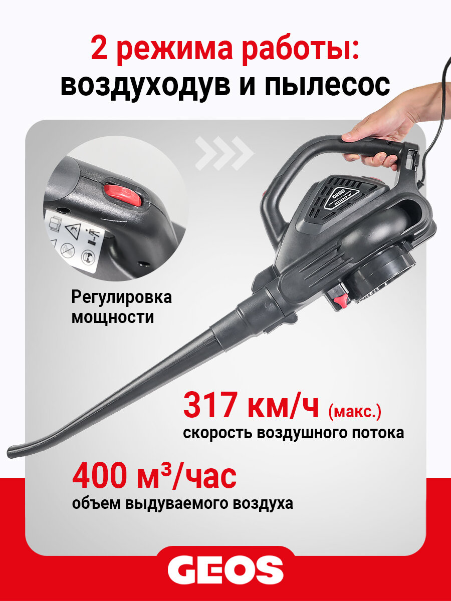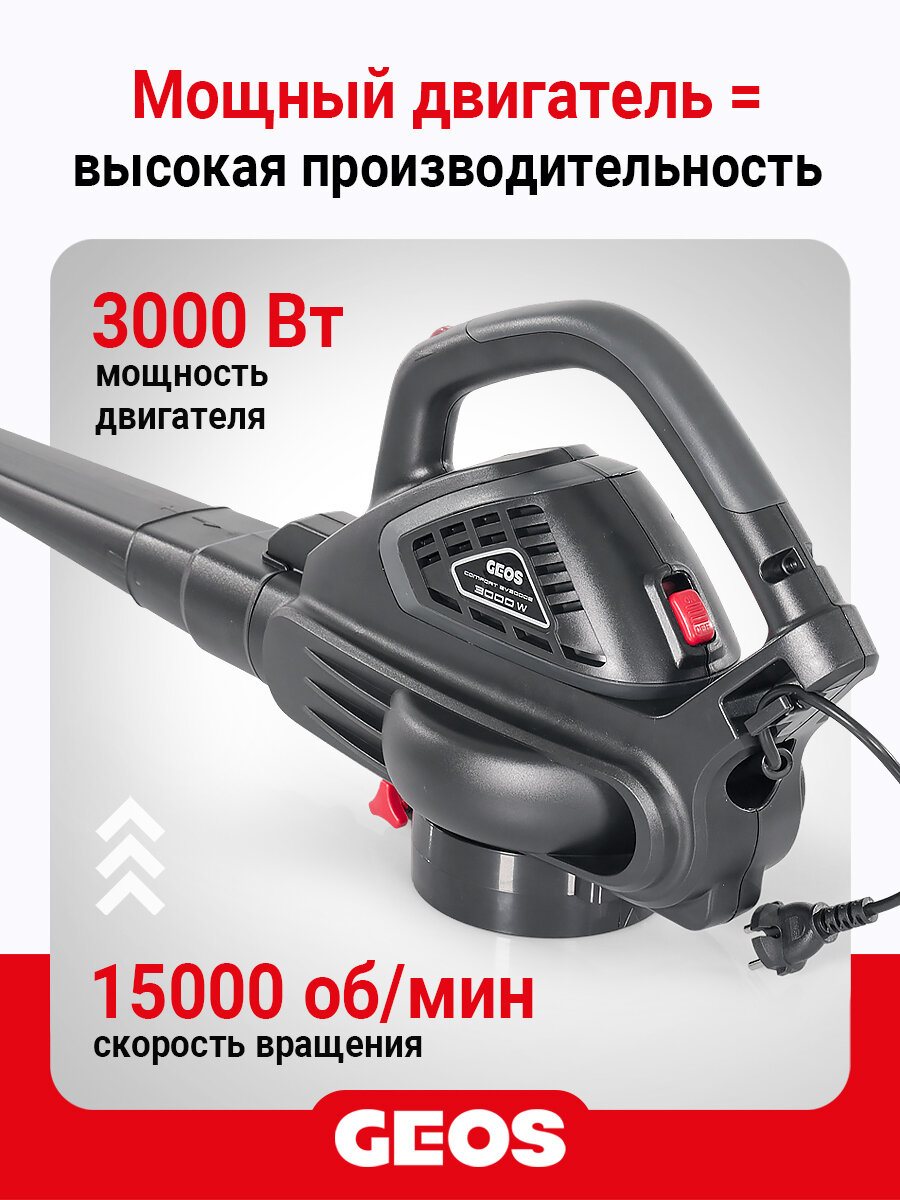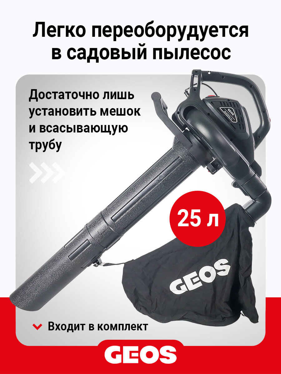 Воздуходув-пылесос садовый электрический GEOS Comfort BV3000E, 215895 (с мешком и ножом для измельчения для мусора): сравнение цен, характеристики, фото, актуальное наличие и цены.