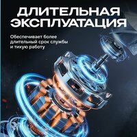 Основой конструкции беспроводной воздуходувки является мощный трехфазный бесщеточный двигатель, создающий турбоэффект. Такая конструкция позволяет устройству эффективно и быстро очищать любые поверхности и накачивать спортивный инвентарь. Ветродуйка – электрический насос для лодки оснащена высокопроизводительным вентилятором, который способен развивать максимальную скорость до 100 000 об/мин. Металлические лопасти вентилятора плотно расположены друг к другу, что обеспечивает высокую эффективность устройства. Общая мощность двигателя составляет 42 Вт, что позволяет аккумуляторной воздуходувке для автомобиля и ПК легко справляться даже с самыми сложными задачами.