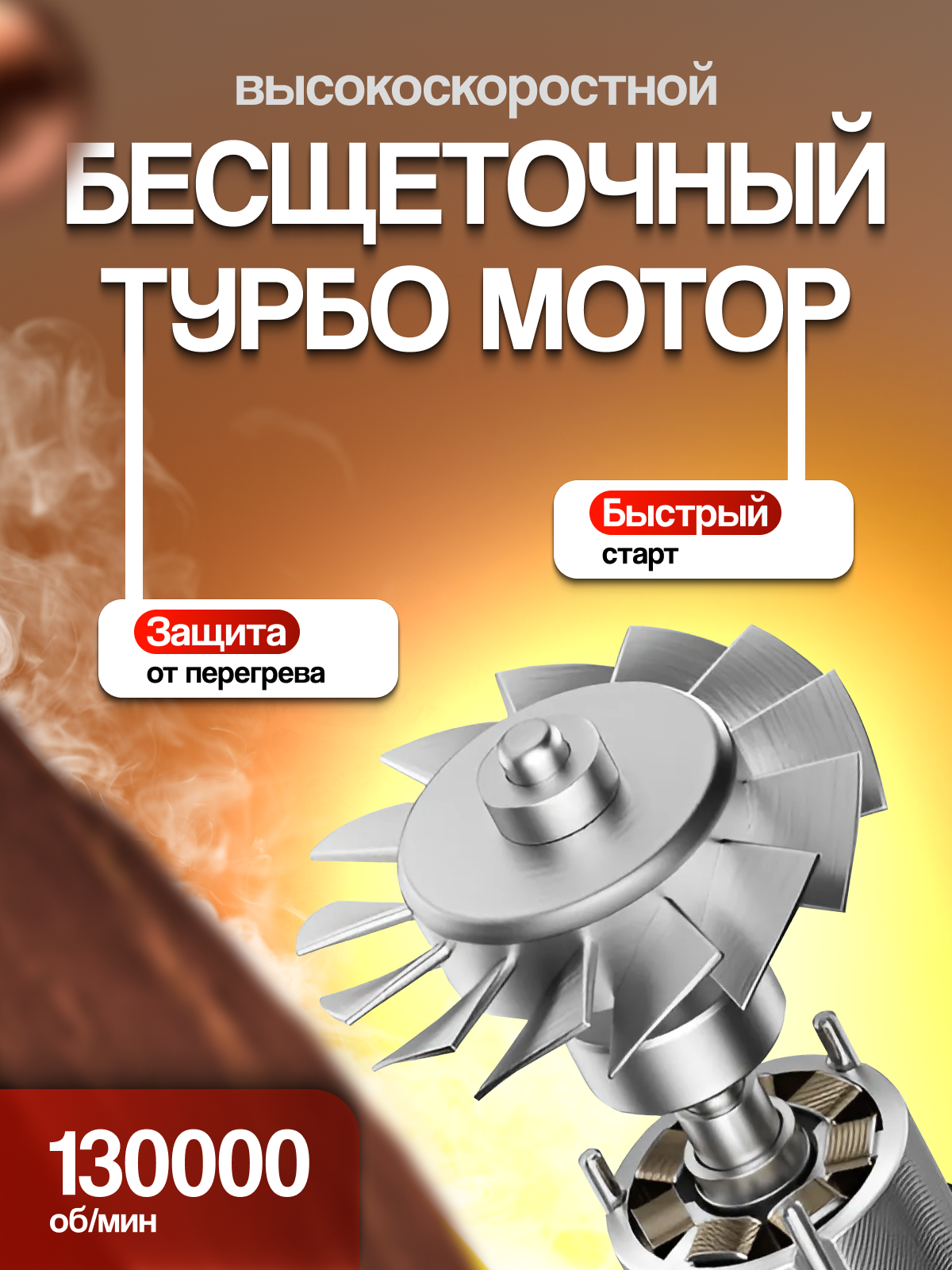 - Максимальная скорость бесщеточного двигателя: 130000 rpm