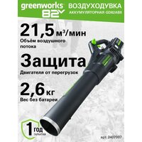 Воздуходувка аккумуляторная Greenworks, 82V, без АКБ и ЗУ, 2407007