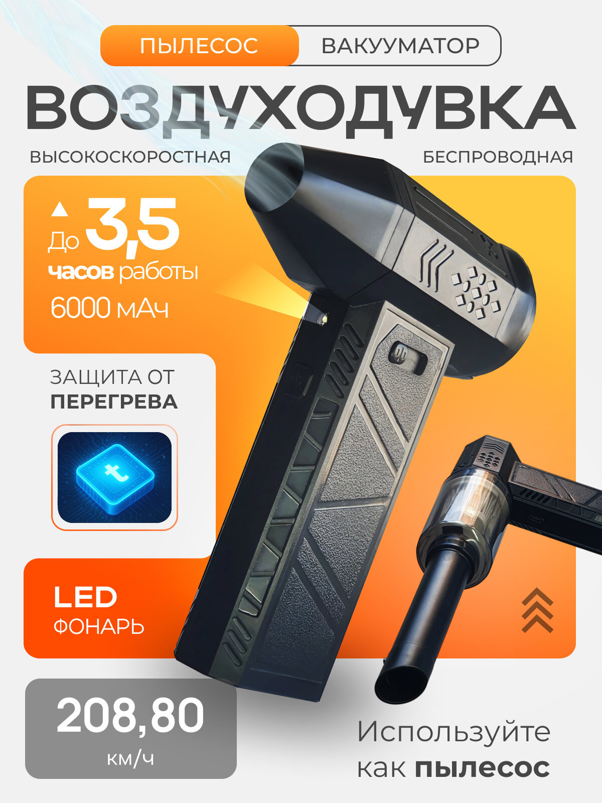 Купить Воздуходувка аккумуляторная мощная / пылесос — вакууматор / воздуходувка для компьютера с доставкой по всей России.