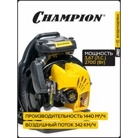Воздуходувка бензиновая CHAMPION GBR376, 2,7 кВт, 1440 м3/ч, 95 м/с, 10,5 кг: сравнение цен, характеристики, фото, актуальное наличие и цены.