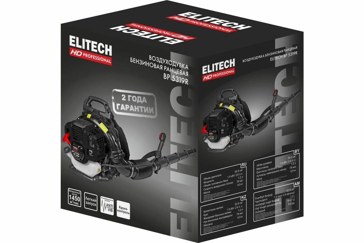 Воздуходувка бензиновая ELITECH HD BP 5319R (52.8см3,1.9кВт,1450 м3 ч,78м с,1.2л,8.9кг, ранцевая): сравнение цен, характеристики, фото, актуальное наличие и цены.