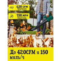 Воздуходувка электрическая, аккумуляторная садовая, 1600 Вт, 36В, с регулятором скорости