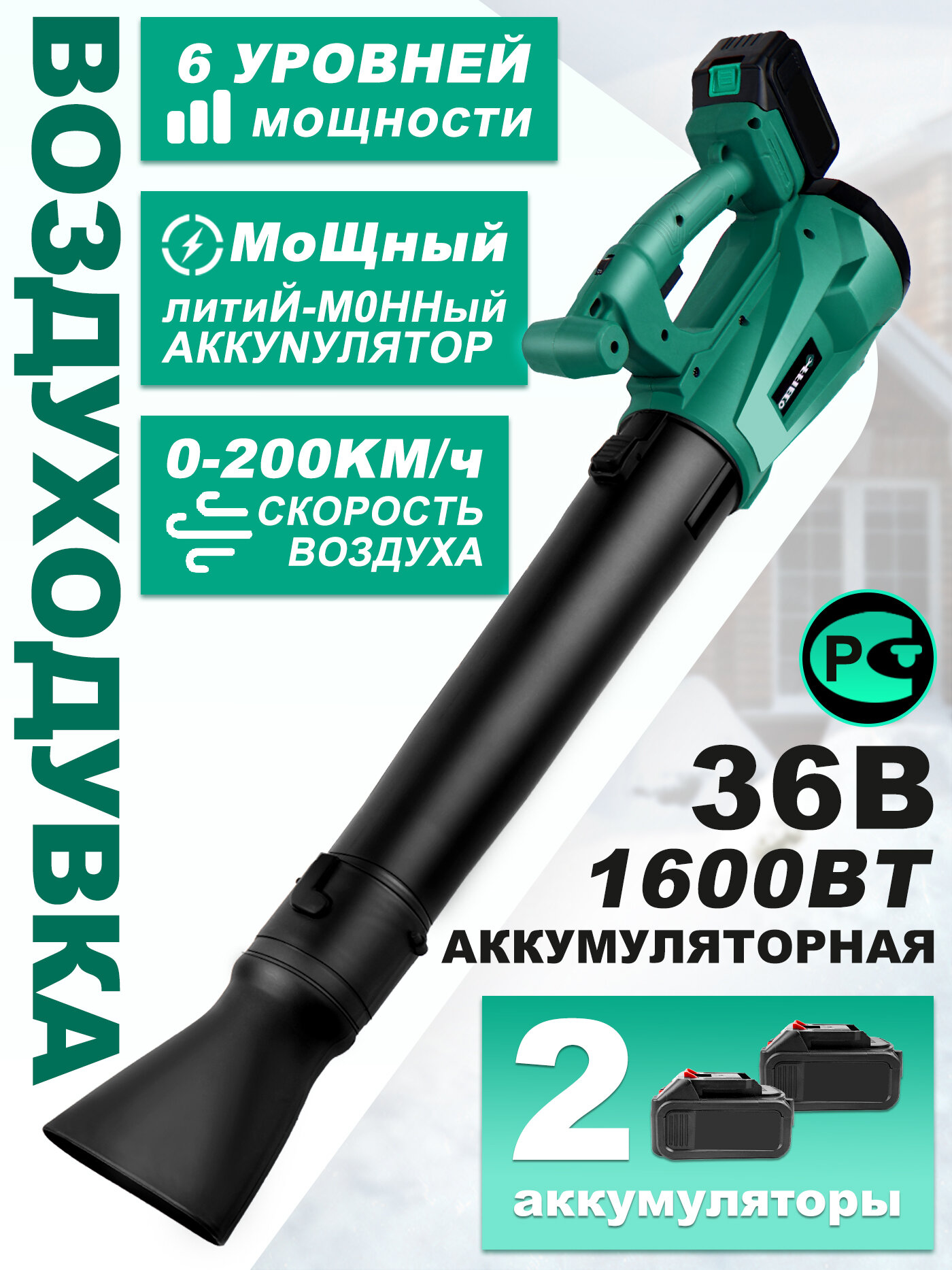 Купить Воздуходувка электрическая , с регулятором скорости, Включает в себя литиевую батарею и аксессуары,36В, Черный зеленый с доставкой по всей России.