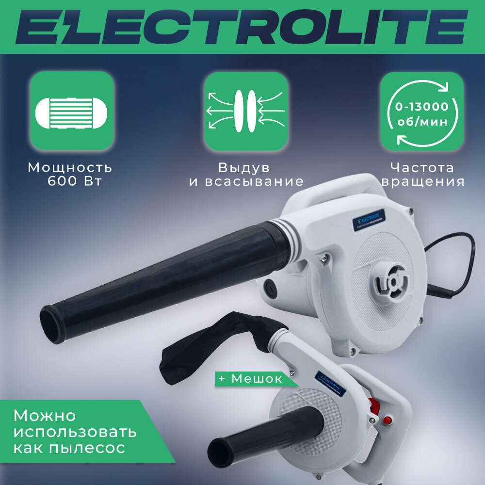 Воздуходувка-измельчитель электрическая Electrolite ВУ 300 ( 600 Вт, 180 м/ч, рег. оборотов, мешок ): сравнение цен, характеристики, фото, актуальное наличие и цены.