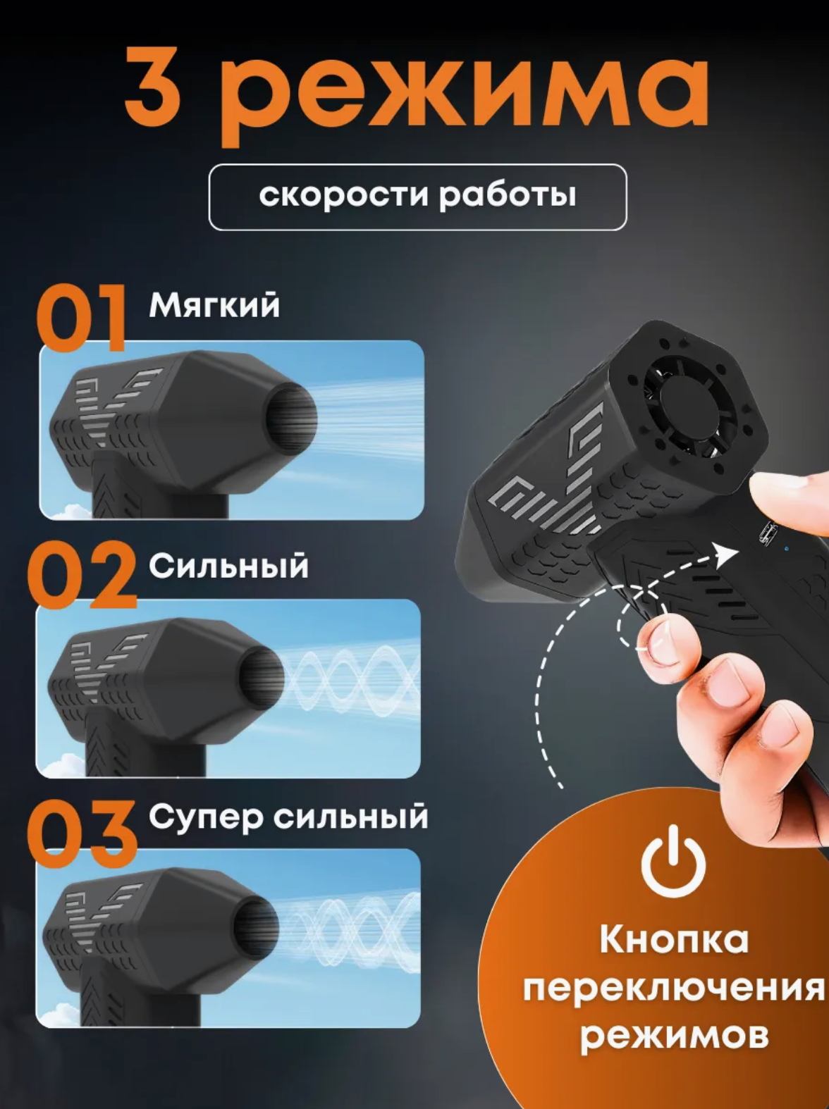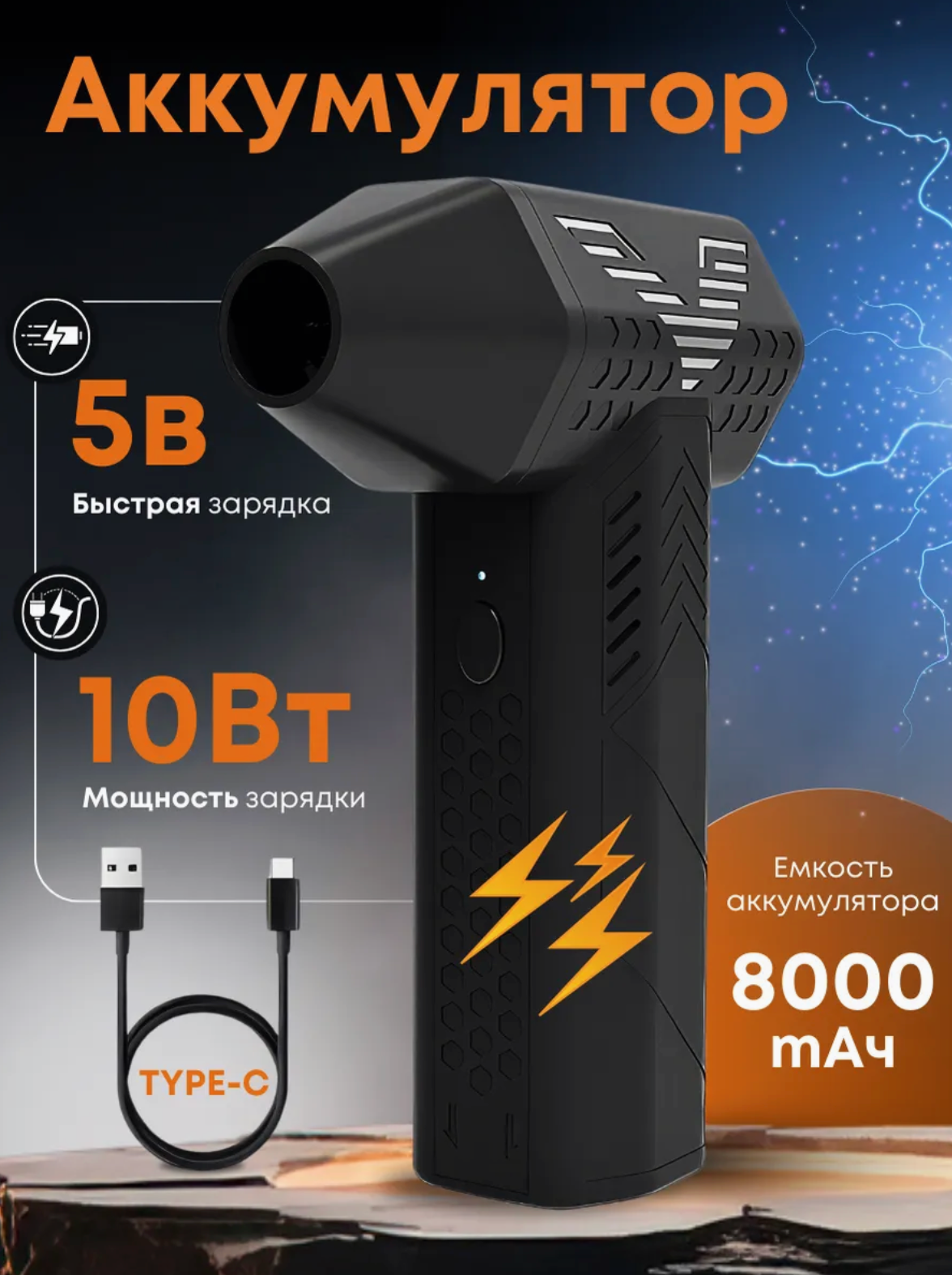 Купить Воздуходувка — Портативный Турбовентилятор, Мини-воздуходувка аккумуляторная 200W, Черная (портативная ветродуйка, турбовентилятор) с доставкой по всей России.