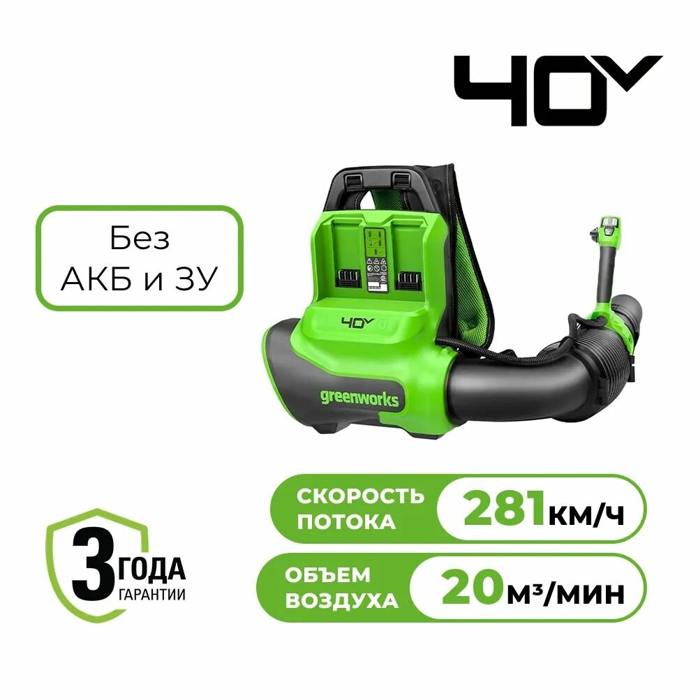 Купить Воздуходувка ранцевая Greenworks GD40BPG2 40V 2408107 бесщеточная аккумуляторная с доставкой по всей России. Воздуходувка ранцевая Greenworks GD40BPG2 40V 2408107 бесщеточная аккумуляторная: сравнение цен, характеристики, фото, актуальное наличие и цены.