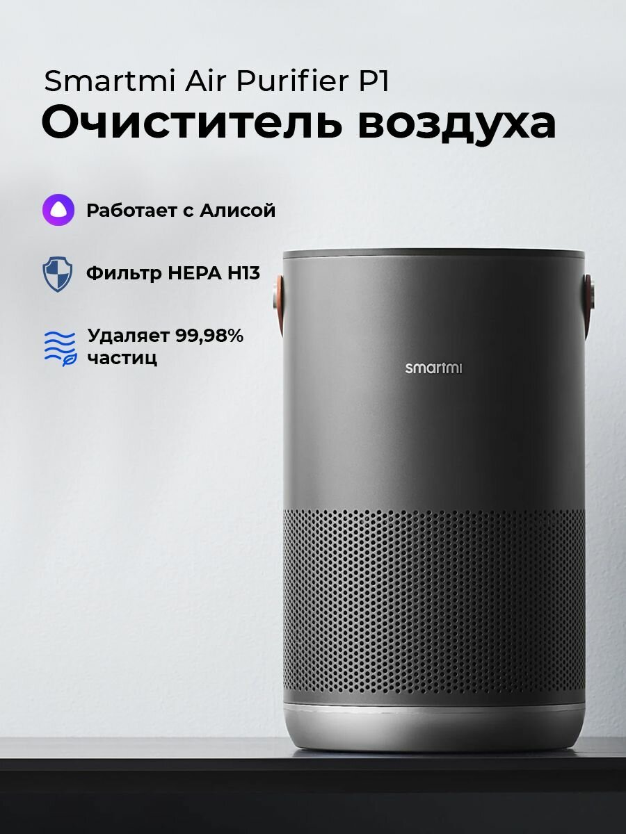 Очиститель воздуха SmartMi Air Purifier P1, HEPA, угольный, темно-серый: сравнение цен, характеристики, фото, актуальное наличие и цены.
