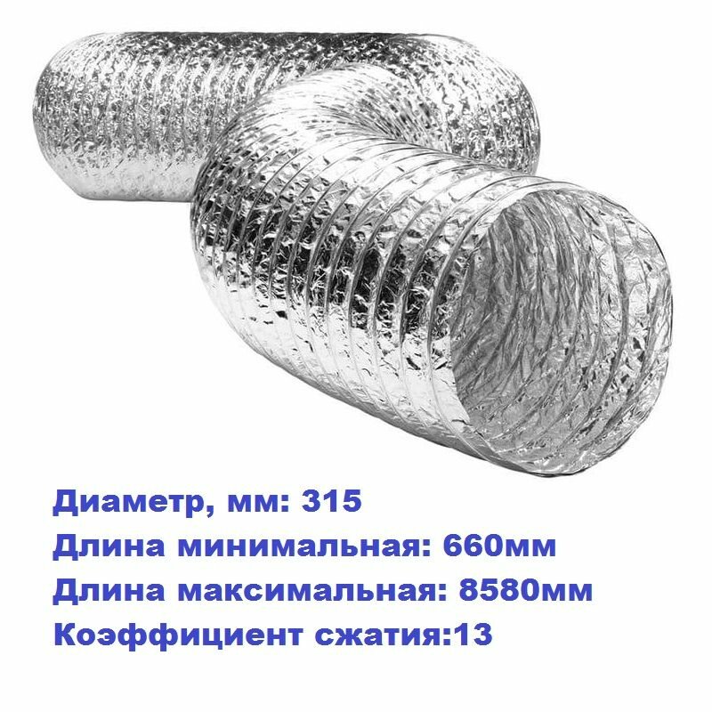 Воздуховод гибкий алюминиевый гофра ALUDUCT d:315мм, L:660-8580мм (8,5 метра, обрезок): сравнение цен, характеристики, фото, актуальное наличие и цены.