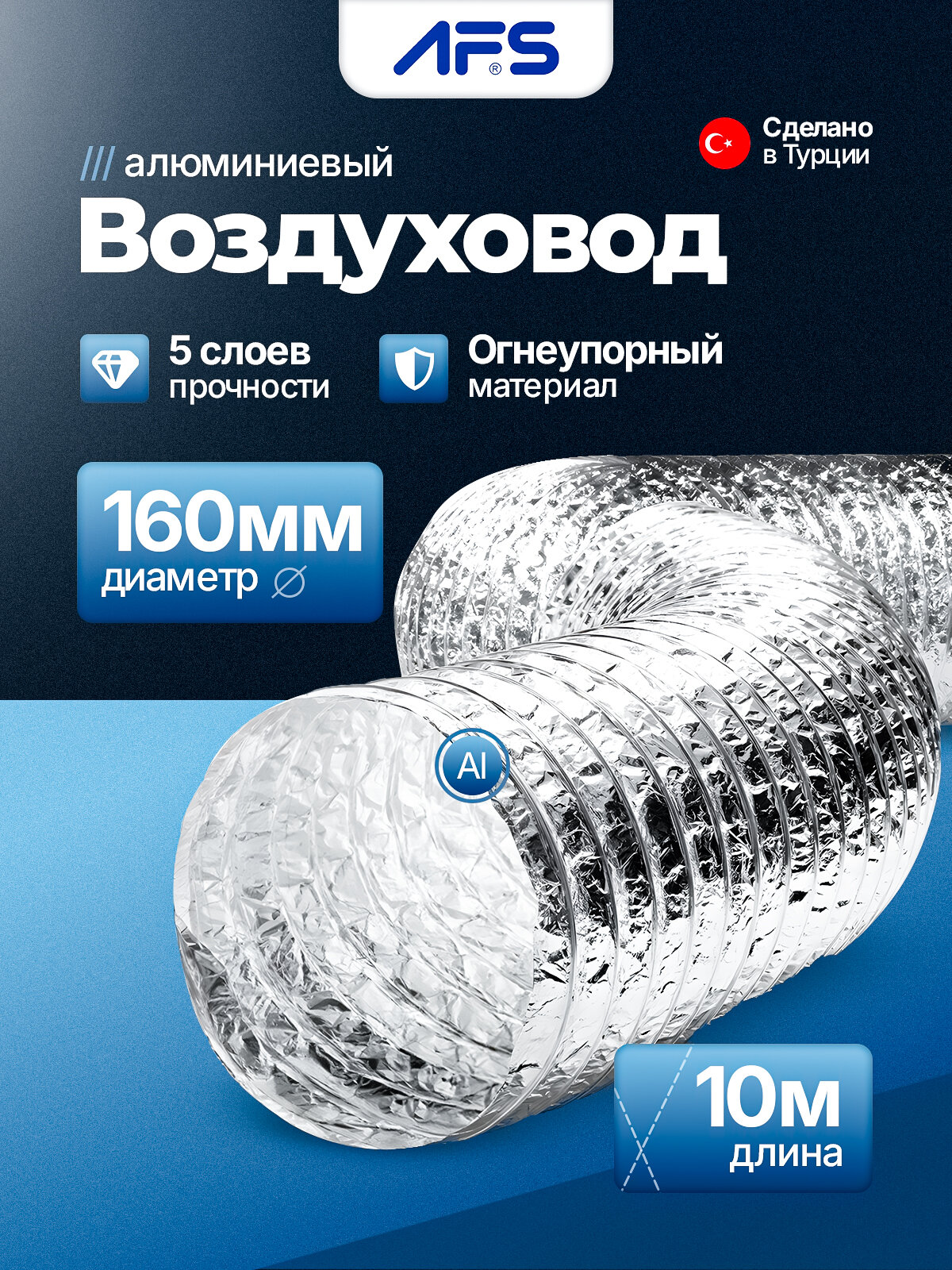 Воздуховод гибкий алюминиевый неизолированный для вентиляции AFS ALUAFS.70 (160 мм диаметр, 10 метров длина): сравнение цен, характеристики, фото, актуальное наличие и цены.
