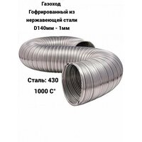 Стальной гофрированный газоход из нержавеющей стали производства "ТорТорг" (марка стали AISI 430). Толщина стальной ленты 0,1 мм d- D140 мм. Канал вентиляционный стальной предназначен для отвода продуктов горения из приборов бытового назначения (газовых колонок, котлов, вытяжек и тд). Канал вентиляционный (дымоходный) выполнен из нержавеющей ленты с пятиступенчатым замком. Легкий вес, так же значительно упрощает монтажные работы. Изготавливается из негорючей, стойкой к коррозии ленты из нержавеющей стали толщиной ленты 0,1 мм (+0,02 мм). Газоход не растягивается (более заявленного размера), его можно только сгибать практически под любым углом, после чего он остается так же герметичным. Интервал рабочих температур от -60 С до +1000 С°. Максимальное рабочее давление +2,000 Па. Класс огнестойкости: не горючий. Рекомендуемая скорость воздуха: рабочая 7м/с, максимальная 30 м/с. Область применения: Удаление продуктов горения (дымоход), вентиляционные системы, удаление газов и пыли, опилок. Является надежной заменой запрещенных алюминиевых гофр. Газоходы маркируются по внутреннему диаметру, наружный размер, с учетом гофросборки +7мм. От маркировочного размера. Товар сертифицирован.