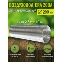 Воздуховод гибкий 20ВА ERA спирально-навивной, тип соединения ленты – тройной замок. Внутренний диаметр – 200 мм. Номинальная длина 2,5 м ±10 см. Максимальная длина в растянутом виде – 3 м. Изготовлен из алюминиевой фольги толщиной 80 мкм. Не подвергаются коррозии и не меняют со временем внешний вид. Трудновоспламеняемы, выдерживают температуру от -30 до +300 °C. Обладают большой износостойкостью, стойкостью к коррозии. Не содержат вредных добавок и безопасны для окружающей среды. Гофра легко монтируется с фасонными элементами ERA. Между собой соединяются при помощи соединительных элементов соответствующего диаметра. Для более надежной фиксации трубы с другим элементом вентиляции, можно использовать червячный хомут, любой герметик, алюминиевый или армированный скотч. Воздуховод широко используется для приточной и вытяжной системы вентиляции, для систем кондиционирования как в жилых домах и квартирах, так и в промышленных сооружениях и общественных пространствах. Часто его можно встретить на кухнях, где он используется для соединения вытяжки с вентиляционной шахтой. Может применяться как гофра для кондиционера. Главное преимущество гибких каналов – возможность повернуть канал практически под любым углом. Также они отличаются небольшим весом и простотой монтажа. Труба предназначена для подачи свежего и отведения использованного воздуха, что создает благоприятный микроклимат в помещении.