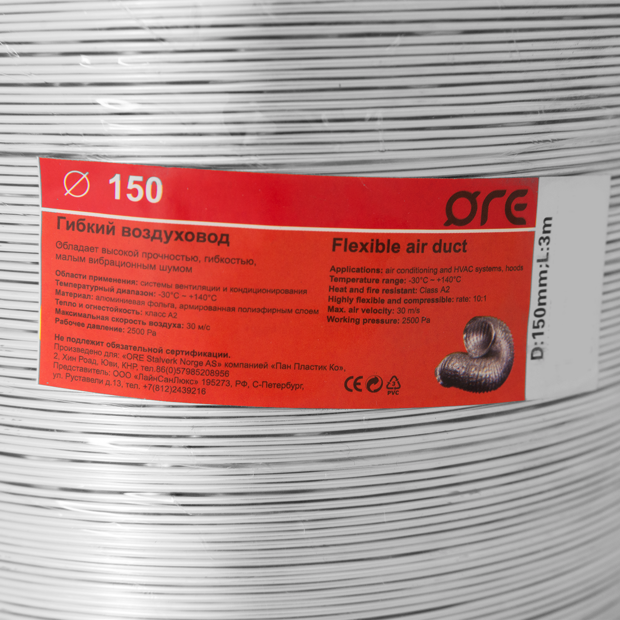 Купить Воздуховод гибкий Ore D150 3 м алюминий с доставкой по всей России.