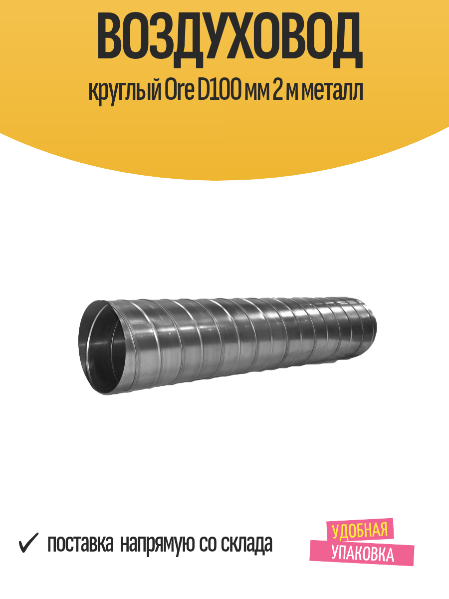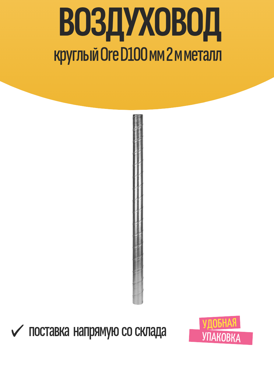 Воздуховод круглый Ore — основной элемент в системе приточно-вытяжной вентиляции. Канал выполнен из ленточной оцинкованной стали, устойчивой к коррозии и перепадам температур. Спиральный фальц придает конструкции дополнительную жесткость. Воздух внутри трубы распределяется равномерно и перемещается тихо даже при высоких скоростях и давлении. Схема прокладки воздуховодов подбирается индивидуально. Прямые участки собирают ниппельным методом. Особенности: диаметр подключения воздуховода — 100 мм, тип изделия — спирально навивной, толщина стали — 0,5 мм, длина изделия — 2 м, вес упаковки 2,4 кг.